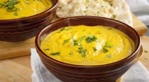 You don’t have to order takeout to enjoy a spicy vegetarian soup. To recreate this twist on a traditional favorite, all you have to do is caramelize onions with the recommended spices, simmer everything on the stovetop, then blend with an immersion blender. Top with a drizzle of butter or olive oil and serve with naan.