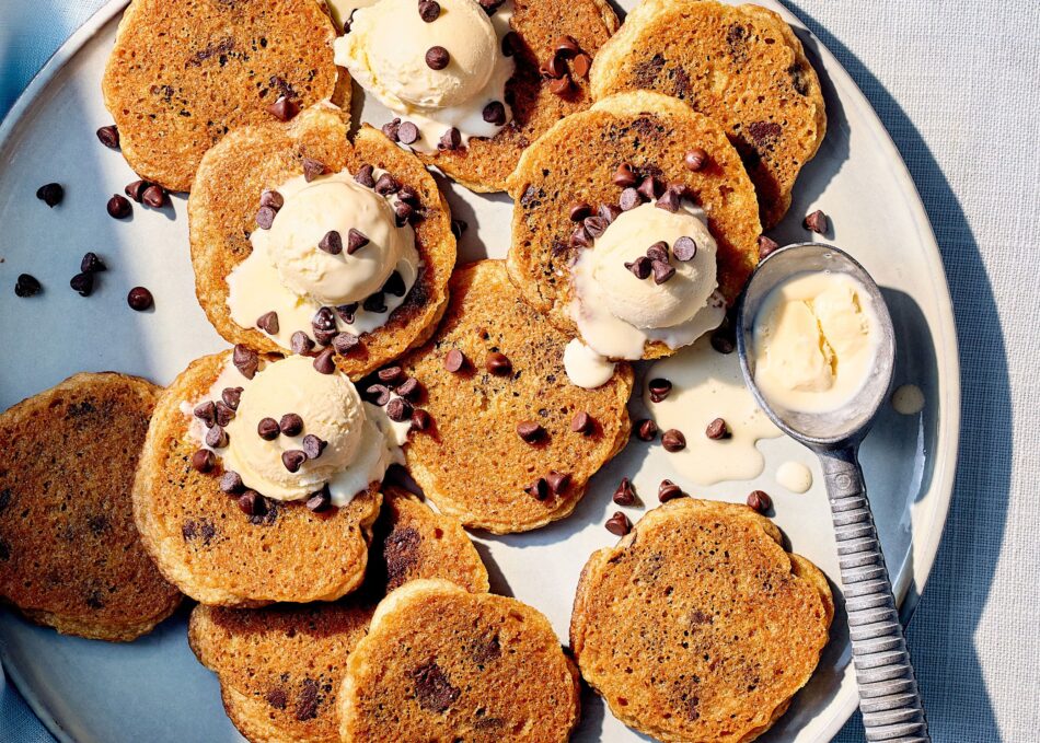 Make cookies to order “pancake-style” to suit everyone’s preferred texture. Cook 1 1/2-inch balls of (purchased or homemade) chocolate chip dough over low heat for about 10 minutes or until edges are set. Flip and cook to desired doneness. Serve with ice cream and extra chocolate chips.