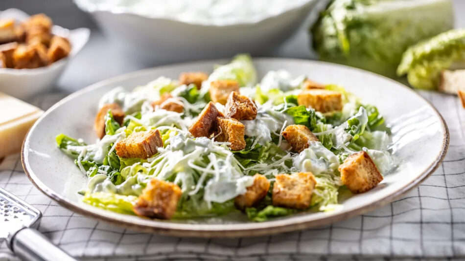 Whether you like to adorn your Caesar salad with grilled tofu or sautéed shrimp, it’s hard to depart from the dish’s staple components — the umami dressing, salty Parmesan, crunchy croutons, and crisp romaine lettuce. One expert, however, believes that switching out romaine for another leafy green gives Caesar salad a better bite.
