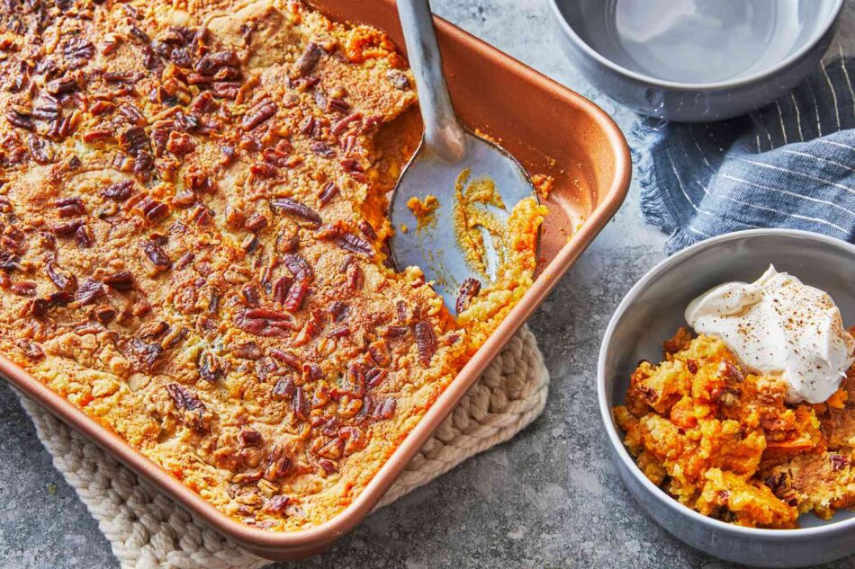 There really is something for everyone in this recipe. Don’t want nuts but still want the crunch? Replace the pecans with pumpkin seeds, oats, or even shredded coconut. Want to make it gluten-free? Swap out the cake mix with any gluten-free version. Want more spice than sweet? Add extra cinnamon, ginger, cardamom, nutmeg, or pumpkin pie spice. Want to take this dessert up a notch? Top it with vanilla ice cream or a salted caramel drizzle.