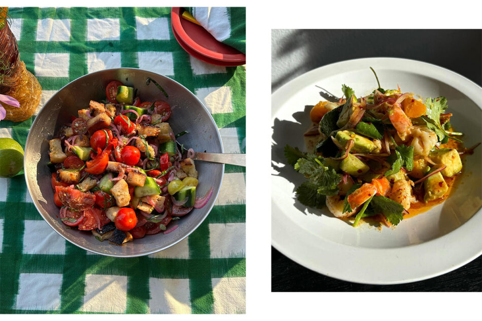 Leave it to Julia Busuttil Nishimura to have our mouths watering through the screen. Here, she’s made our version of the perfect side salad, featuring fresh green vegetables, a healthy serving of spring herbs, and a homemade pesto. Not notes.
