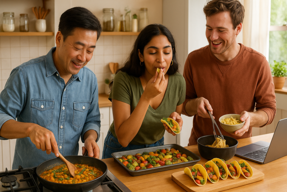Default to a “two veg + one carb” plate. For tacos it’s beans + slaw + tortillas. For the curry it’s potatoes/cauliflower + lentils + rice. Simple templates reduce decision fatigue.