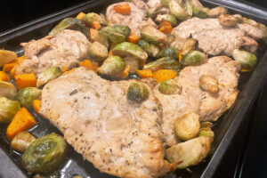 My search led me to this Maple Dijon Chicken Sheet Pan recipe. And let me tell you, it really checked all of the boxes I needed for an early fall dinner. The rich flavor of the rosemary pairs nicely with the maple and mustard of the sauce. The sweet potatoes and Brussels sprouts were also welcome additions. And not having a lot of cleanup to do after was a big plus.