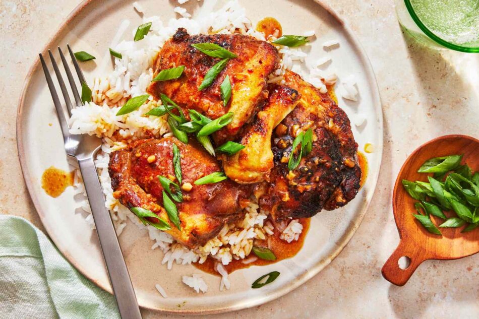Budget-friendly chicken thighs come together with pantry staples to create this warming dish. You’ll want to use bone-in chicken thighs (instead of the boneless ones) to ensure success with this slow-cooker favorite.