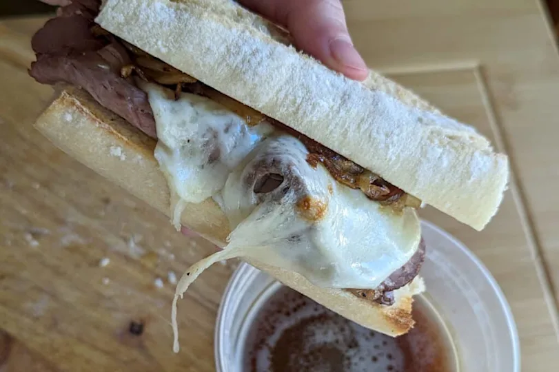 Roast beef on a crusty roll, dipped in hot jus. Simple idea, huge payoff. That dunk is everything.