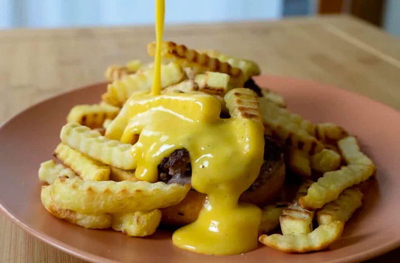 Texas toast base, your choice of meat, a pile of fries, and cheese sauce poured over everything. Fork required, napkins optional. Controlled chaos that always hits.