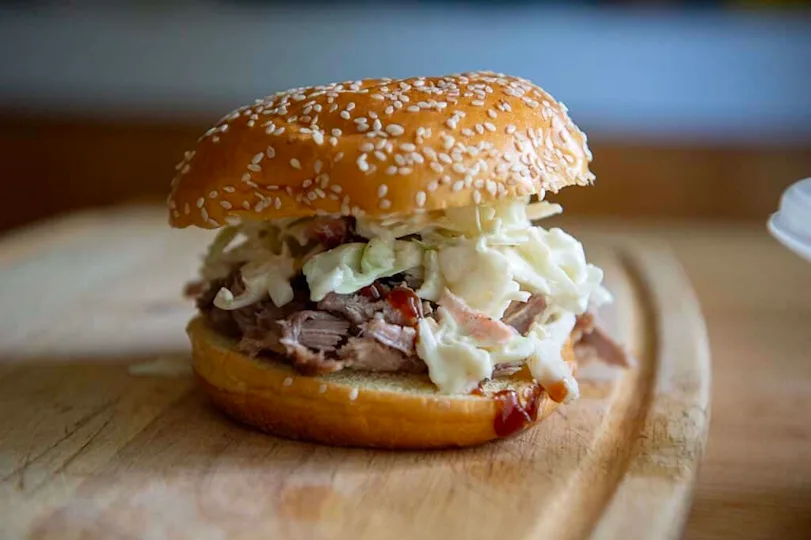 Smoky, tender pork piled on a soft bun, often with sweet onions or slaw. Beach picnic energy in a sandwich.