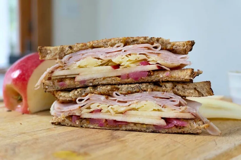 Turkey, sharp cheddar, apple slices, and honey mustard on hearty bread. Sweet and tangy cut through the richness for a clean, balanced finish.