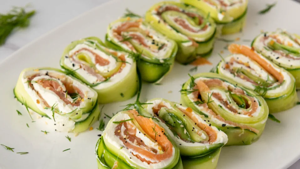 Get This Recipe: Smoked Salmon and Cream Cheese Cucumber Rolls