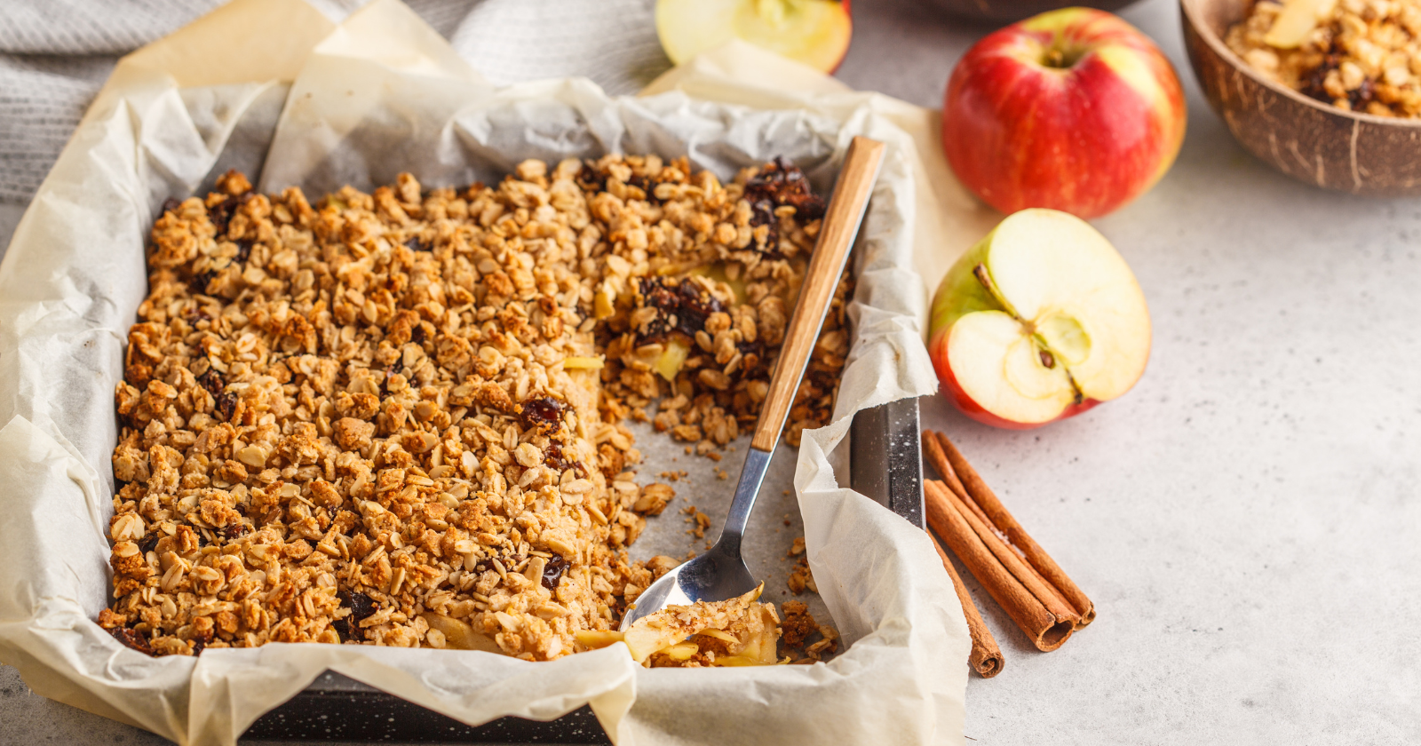 I’d slice a mix of tart and sweet apples, toss them with cinnamon, nutmeg, and lemon juice, then top everything with a crumble made from oats, almond flour, coconut oil, and brown sugar.