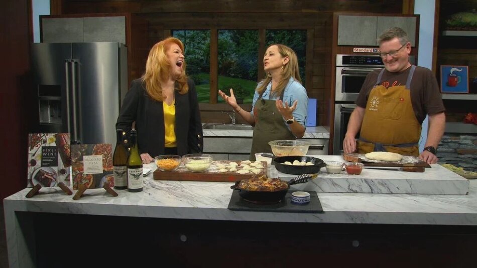 When Helen saw this recipe on the Vindulge social media feed she knew she had to learn how to make it! Mary Cressler and Sean Martin, co-authors of “Fire + Wine” and “Fire + Wine: Backyard Pizza”, joined us share their Buffalo Chicken Pull Apart Bread. You’ll find the recipe on their Vindulge website here. For information about their cookbooks visit www.vindulge.com/cookbook.