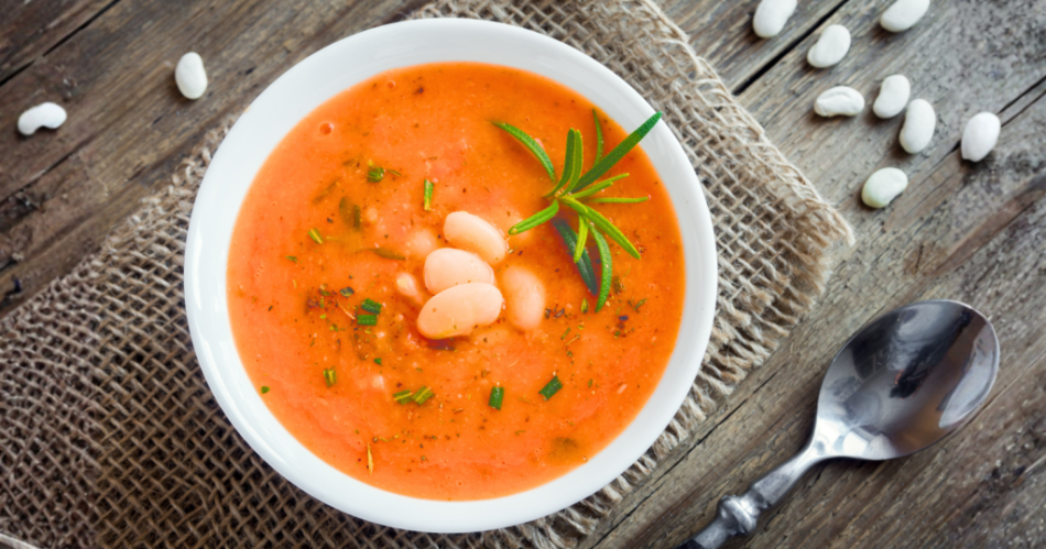 The trick is to roast the tomatoes and aromatics first, then blend with white beans for body.